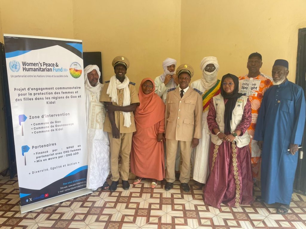 Cet atelier s’inscrit dans le cadre du « Projet d’engagement communautaire pour la protection des femmes et des filles dans les régions de Gao et de Kidal », financé par le Fonds des Femmes pour la Paix et l’Action Humanitaire (FFPH) en partenariat avec ONU Femmes.