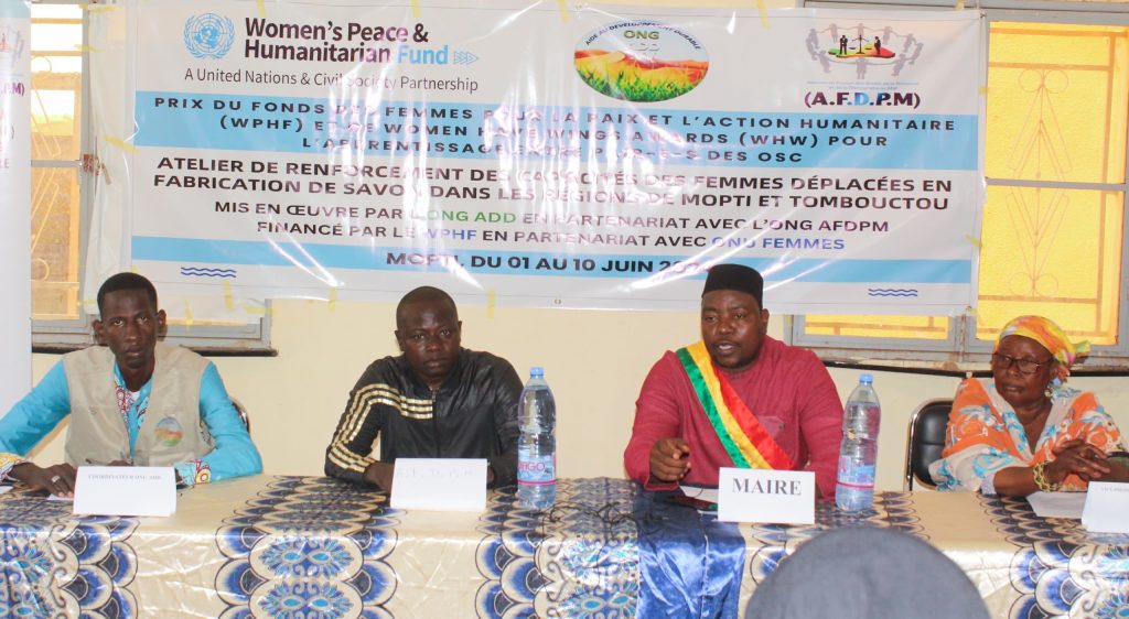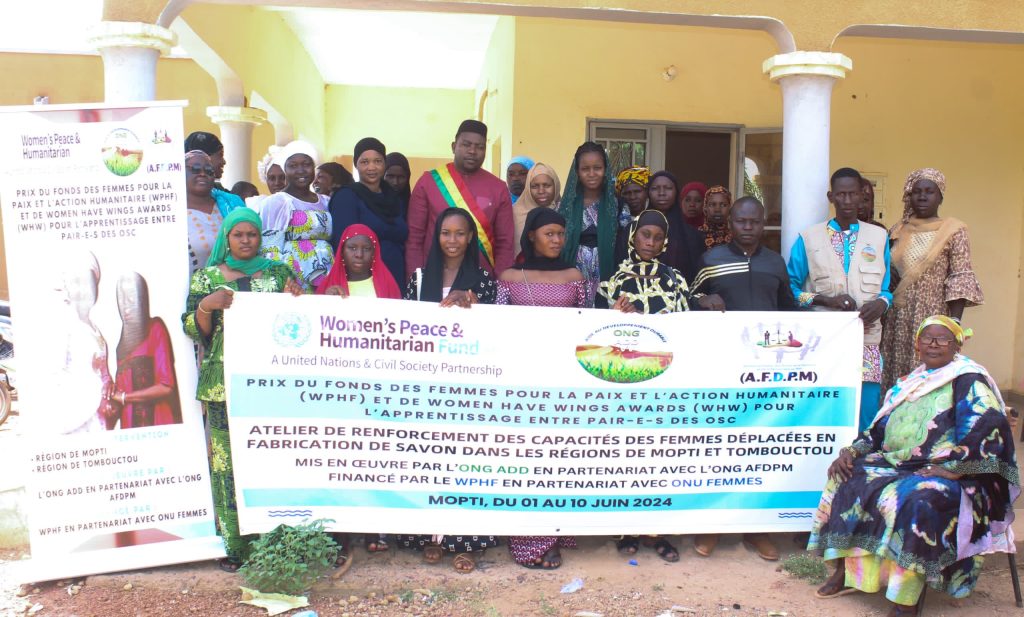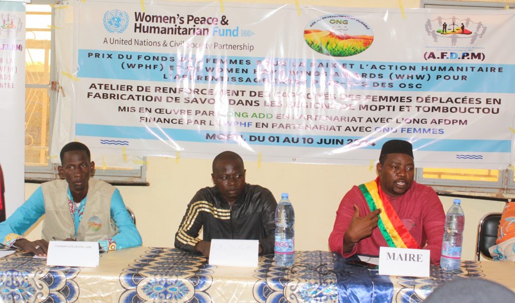 Le lundi 3 juin 2024, s’est tenu au Centre de formation professionnelle multifonctionnel (CFPM) de Mopti le lancement des activités du projet « Renforcement des capacités des femmes déplacées en fabrication de savon à Mopti et à Tombouctou ». Ce programme, financé par le Fonds des femmes pour la paix et l’action humanitaire (WPHF) et les Women Have Wings Awards (WHW), en partenariat avec ONU Femmes, vise à former 20 femmes déplacées de Mopti et Tombouctou aux techniques de fabrication de savon. Cette formation, qui se déroule dans la salle de formation du CFPM, permettra à ces femmes vulnérables d’acquérir des compétences techniques et entrepreneuriales pour lancer leur propre activité de savonnerie.