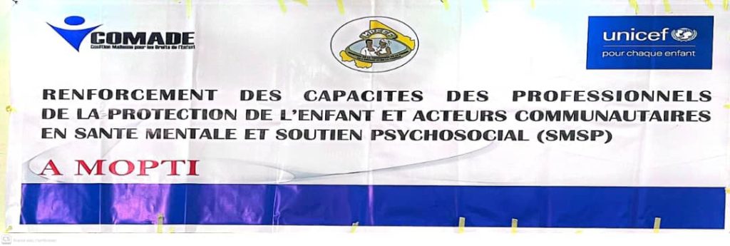 Du 25 au 26 novembre 2025, l’ONG ADD a participé à un atelier de renforcement des capacités des Professionnels de la Protection de l’Enfant et des Acteurs Communautaires en Santé Mentale et Soutien Psychologique (SMSP). Cet atelier, organisé par la Coalition Malienne pour les Droits de l’Enfant (COMADE) en partenariat avec l’UNICEF, a eu lieu dans la salle de réunion de l’hôtel LAFIA de Sévaré, région de Mopti.